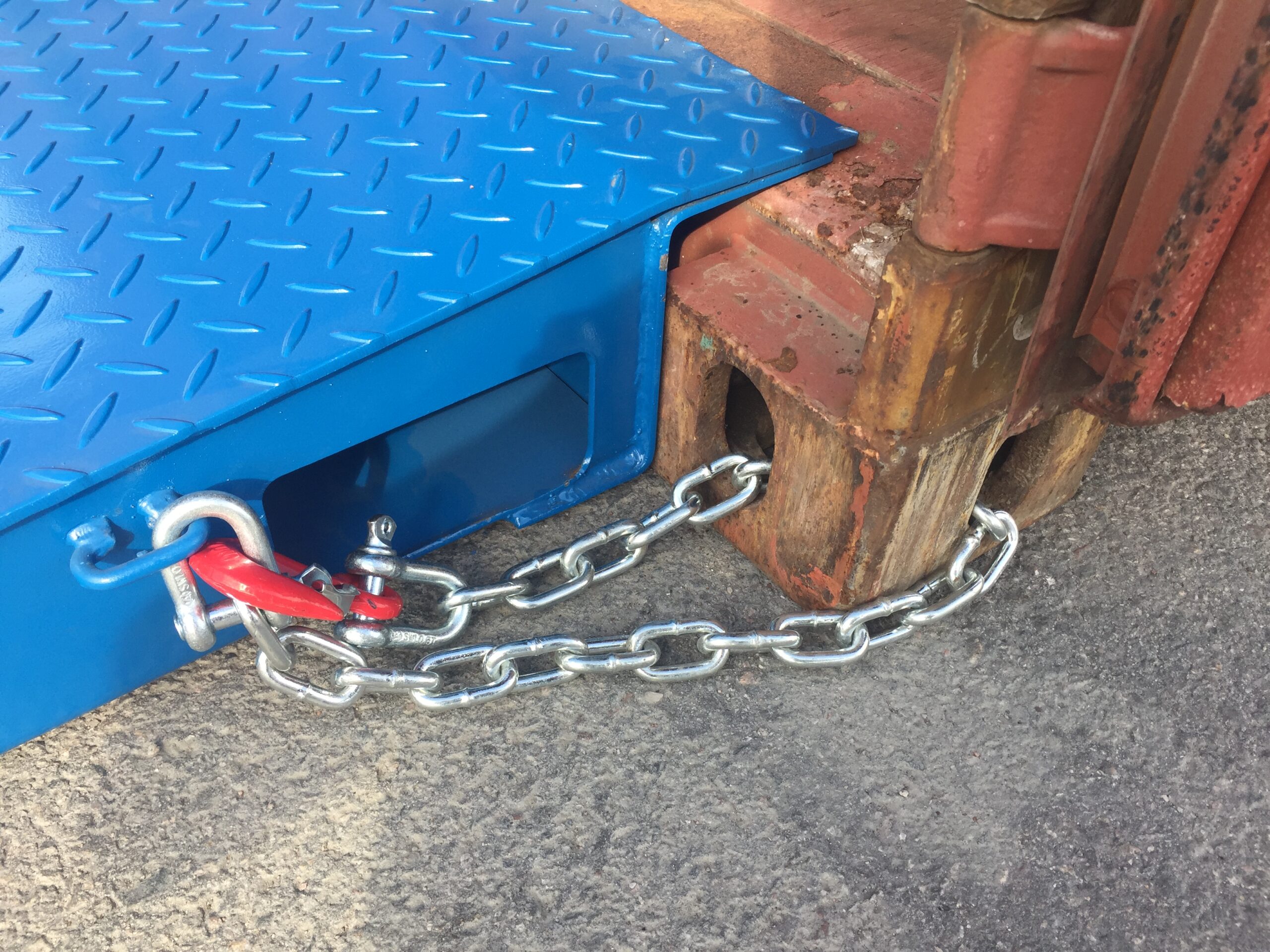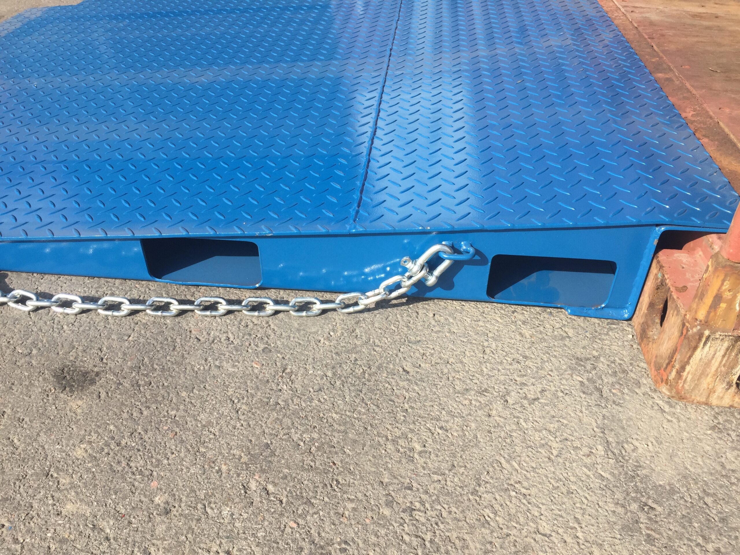 Smidig ramp för i- & urlastning av container. Enkelt att flytta runt rampen med dom smarta gaffeltunnlarna.