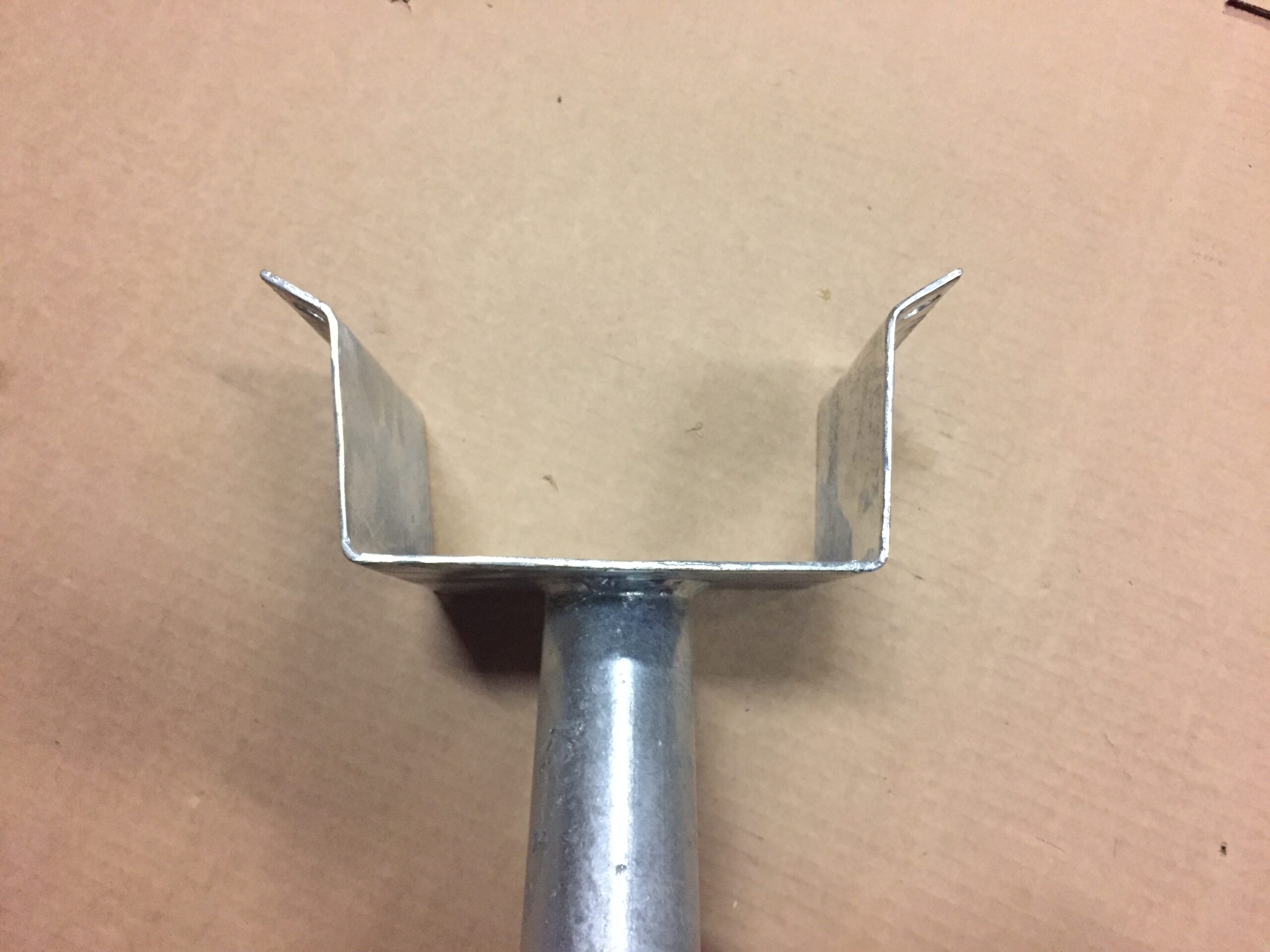 Galvat hörnfäste med 35° vinkel för montering på husgavlar.