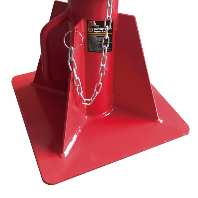 Kapacitet: 25 ton/styck Min.Höjd: 415mm Max.Höjd: 640mm Basplattan: 330x330mm Vikt: 23.5 kg Försänkta sprinthållare
